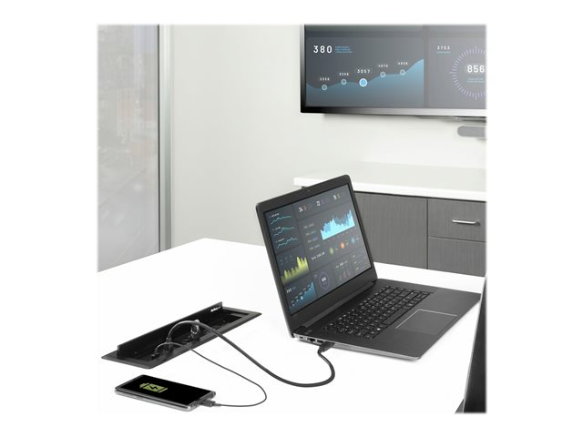 - Omvandla ditt konferensbord till en laddningsstation, en dockningsstation eller en A/V-lösning för att lägga till skärmar för din bärbara dator
